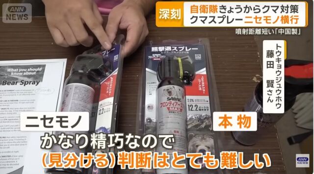 クマスプレーのニセモノ横行 噴射距離が短い「中国製」