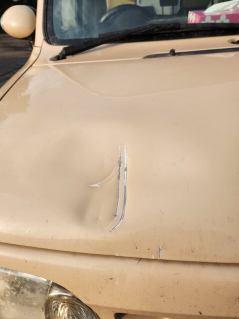 人間がこれと同じ傷つけるには、中型ハンマーで思い切り一撃を加えることと、金切りばさみの先端で、思い切り引っかかないと不可能。熊のパワー凄まじいな。成人男性がまるで子供レベルだよ。
