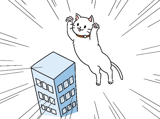 人間に例えると驚異的:身長170cmの人間が猫と同じように跳べると仮定すると、ビル3階相当の約7~8mをジャンプできることになります。