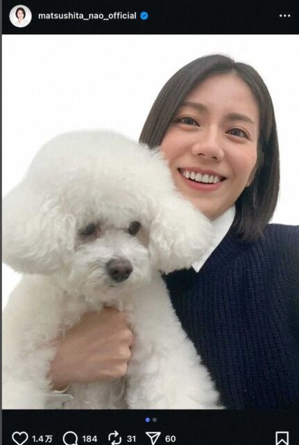 女優の松下奈緒(40)が13日までに自身のインスタグラムを更新。愛犬との2ショットを公開した。