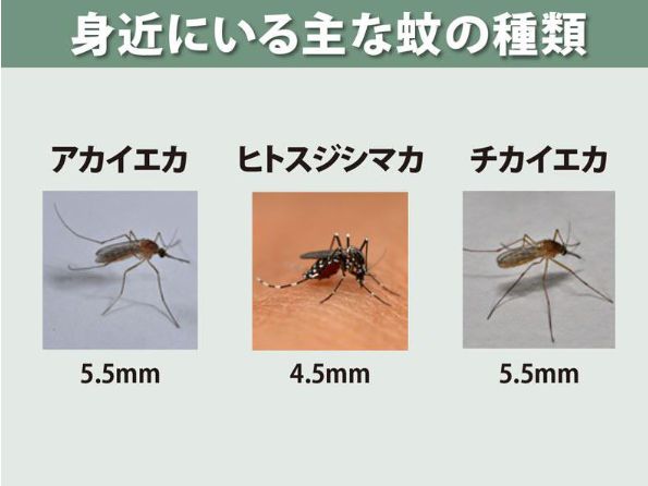 チカイエカは屋内の生活に適応した蚊で、アカイエカとは異なり冬でも休眠せずに、気温20℃前後の条件が満たされた建物の内部であれば1年中繁殖し、吸血・産卵を行います。