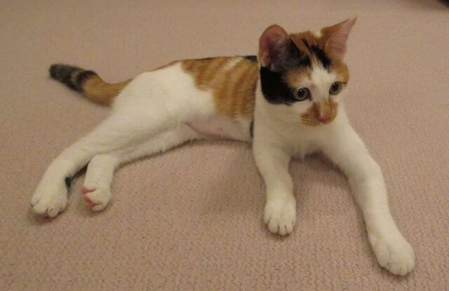 美海は三毛猫の雌。今年8月、生後4カ月半だった美海を、保護団体から動物病院を通じて、ご一家が譲り受けられたという。地球の象徴ともいえる美しい海を願い、ご一家で命名された。